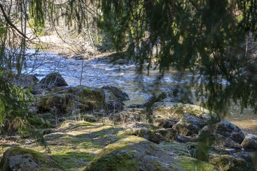 Vinkki! Lahankoskea alaspäin vasemmalta pääsee sillan päättyessä upealle polulle, joka vie lammen ohi jokea pitkin alaspäin. Mahtava paikka pienelle retkelle. Kannattaa käydä katsomassa.